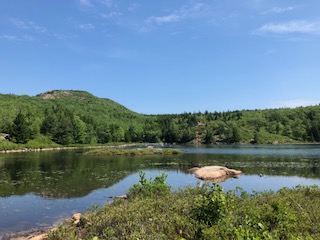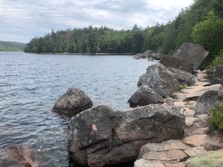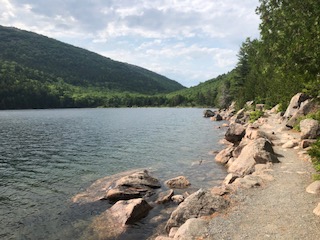 Jordan Pond Path: Parking at the Jordan Pond House- easy, flat hour+ walk around a lake surrounded by mountains. Pretty nice! Classic Acadia scenery