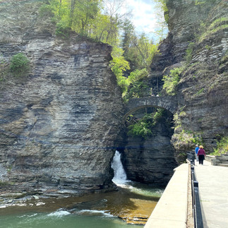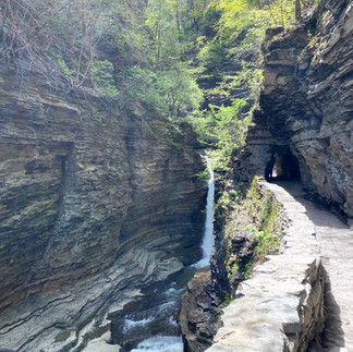 Saturday: Lame breakfast at Firelight, then we drove about 20mins north to Taughannock Park where we started out with a quick walk on the North Rim trail to see some waterfalls (2 this round). Took us about 30mins, then we drove down to Cayoga Lake, parked there, and did the Gorge trail for an hour up and back to one large waterfall. This lake would be super nice to visit in the summer and swim in/boat on. From Taughannock we drove 40mins west to Watkins Glen. We stopped for lunch at the Village Marina, right on the water, not the best food or service - seemed like a cross between a mainstay locals spot that gets plenty of tourists. After lunch we checked out Watkins Glen state park right down the street. I absolutely loved this park- it was so beautiful with all the gorges and waterfalls, I never would have imagined a state park being so impressive. We did the Gorge trail for a mile in, then the last half mile was closed off, so we did the South Rim trail (no views just a hike in the woods), and back. All of the trails are one way only so we took Indian trail on the other side of the gorge to get back. The Gorge trail is a must do though. The whole hike took us about 2 hours. After that we headed back to Firelight for some Happy Hour campfire action, then ubered to dinner at Mix - a tapas restaurant which had surprisingly good food and cocktails, but terrible service. That kind of was universal for all the restaurants, and even Firelight- but I'm going to guess most of the staff up here consisted of College student from Cornell.
